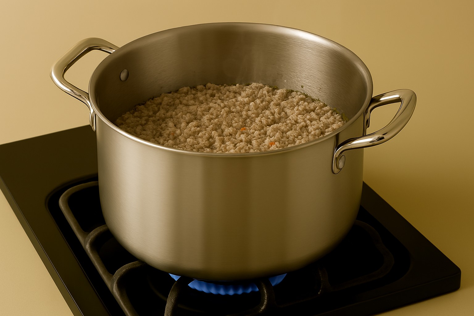 Successivamente aggiungete la carne e anch’essa la fate rosolare.