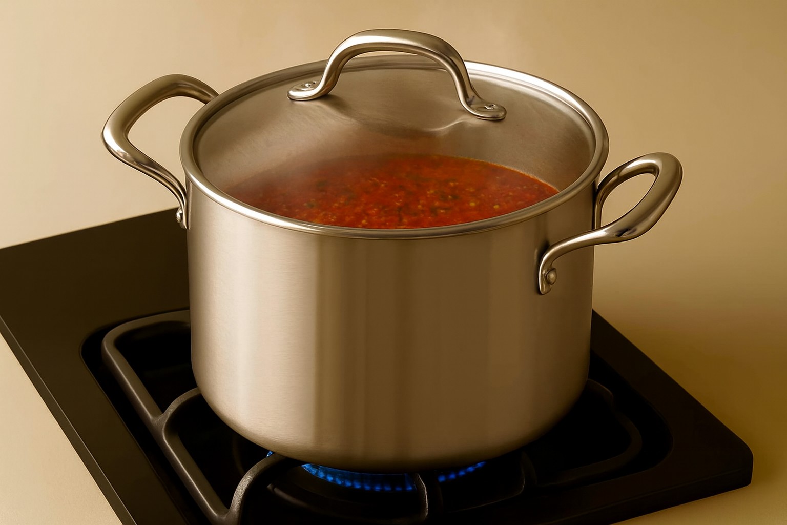 In seguito aggiungete la passata di pomodoro, il sale, il pepe, l’acqua e lasciate cuocere con il coperchio per 4 h.