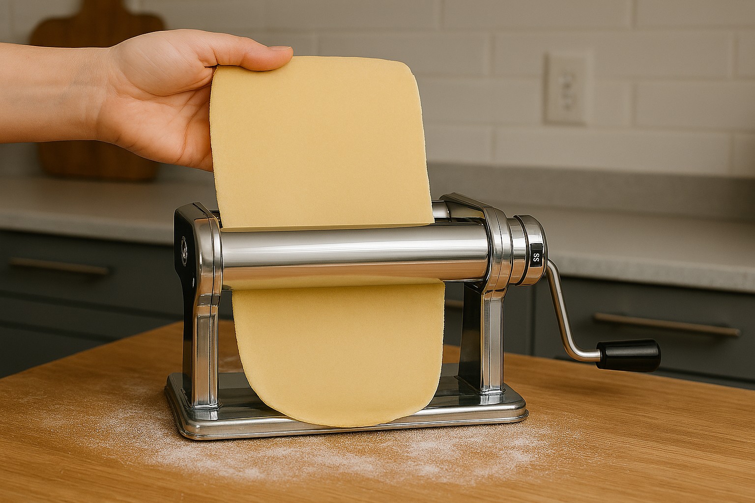 Passati i 30 minuti stendetela con la sfogliatrice dallo spessore più largo che nel caso mio è 9 al 5.